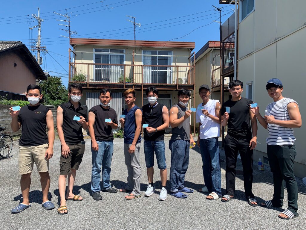 新型コロナウイルスワクチン2回目接種 お知らせ 2021年8月30日 カンボジア人実習生9名が新型コロナウイルスワクチン接種2回目を受けました。 滋賀県にも緊急事態宣言が発令され、心配な状況は続いていますが 従業員のワクチン接種も順次進んでいます。 引き続き個々ができる感染防止対策を徹底していきたいと思います。 実習風景③新型コロナウイルスワクチン接種