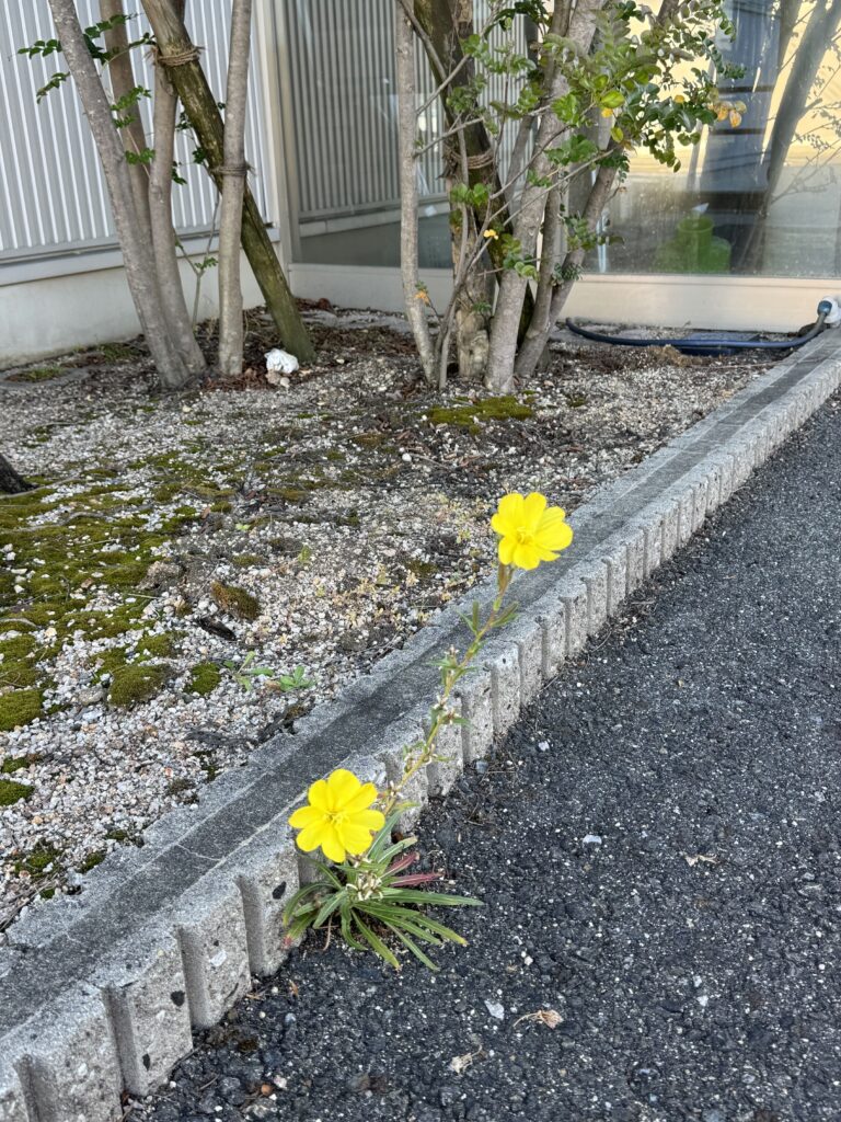 事務所正面玄関横に黄色いかわいい花が咲きました。