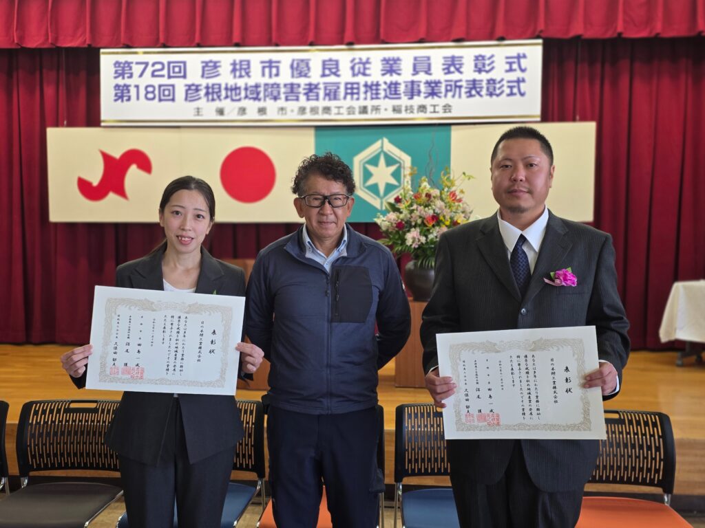 第72回彦根市優良従業員表彰式が開催され、弊社からも2名が表彰されました。