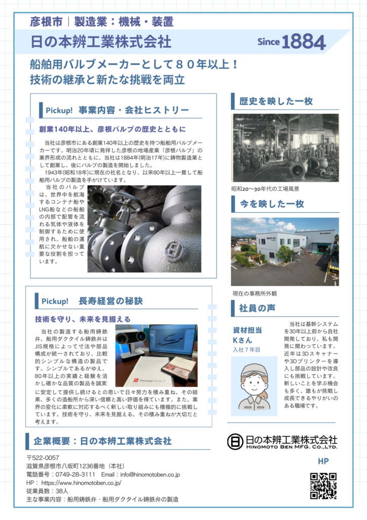 滋賀県のデジタルリーフレット「滋賀に息づく長寿企業〜創業70年以上の滋賀県企業ガイドブック〜」に弊社が掲載されました。